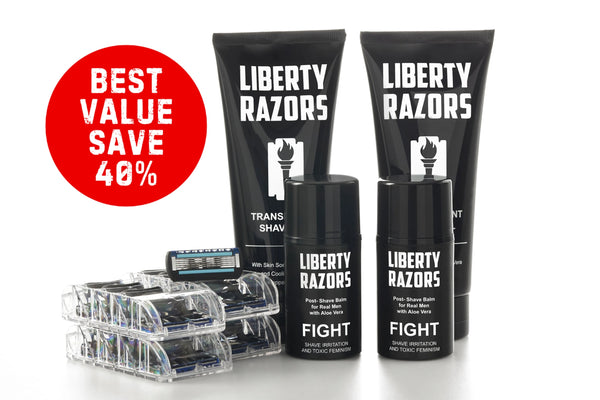 Enjoy free shipping and customize your delivery frequency for ongoing products. Your initial package arrives two months after your shaving kit. Flexibly cancel, pause, or adjust anytime. Simplify your grooming routine with Liberty Razors.